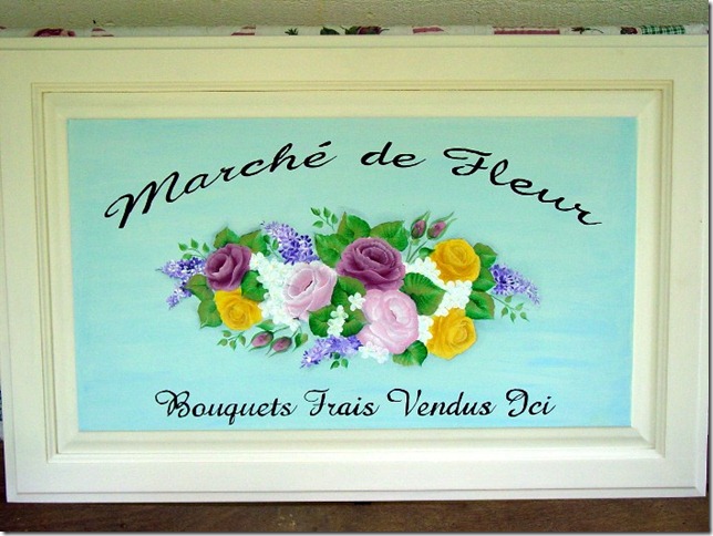 ReplyDeleteOhhh...what a talented lady you are, my friend! I just love each and every painting that you did on the cabinet doors...GORGEOUS! I think my favorite is the "Marche de Fleur" painting that you did...sooo very pretty! Thank you for sharing your pretties with us today!