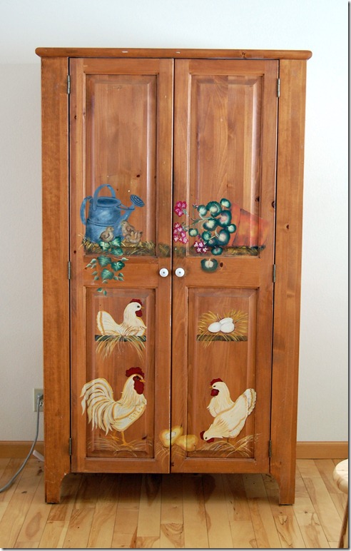 Hi- I love the pear sign - it looks great w/out the pear! The armoire is nice- I can't wait to see what you do with it- I haven't used chalk paint yet either but would love to. I can understand you not wanting to paint over the chickens after working hard on them.