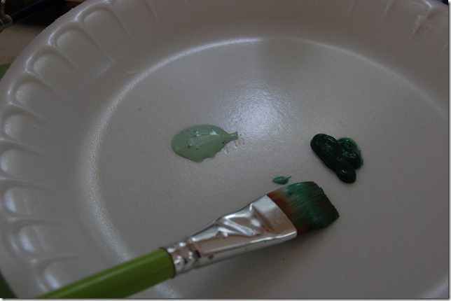 Now for some leaves. This one will take a larger wash brush. I think it is a 3/4 wash brush. Two colors of green double loaded and worked into the brush.