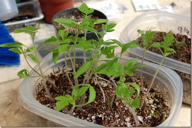 Some of the tomatoes potted up, they are still in a bit of shock in this shot but I have gone out and checked on them again and they are already perking up.