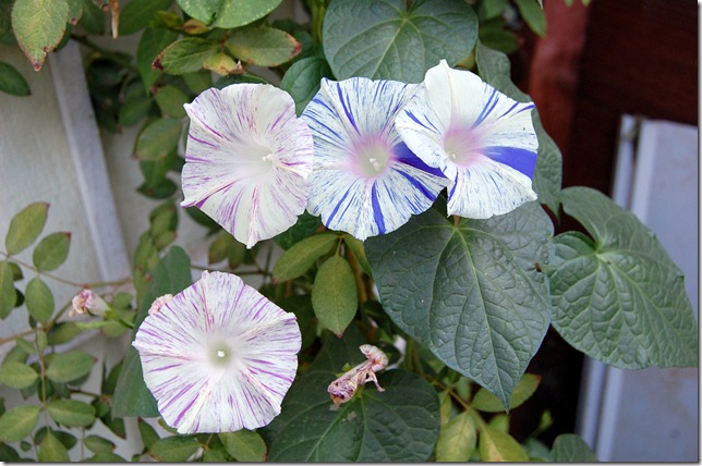 The morning glories out by the chicken pen are still greeting me with fresh unique blossoms each morning. I sure hope to glean some seeds from these to have more next year, I just love them!