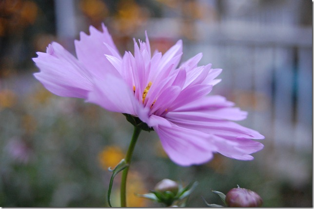 I had given up on getting any blooms from this cosmos. I had tossed the seeds out rather late in the season and then when it was first ready to bloom I did have some deer browsing thru the garden one night, and the nipped off all the buds. But it is one determined plant, and I am so glad it is, I had not seen a double cosmos like this before.